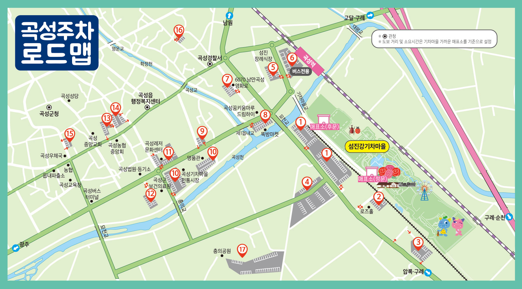 - 공용 주차장: 곡성역, 영운공원 등