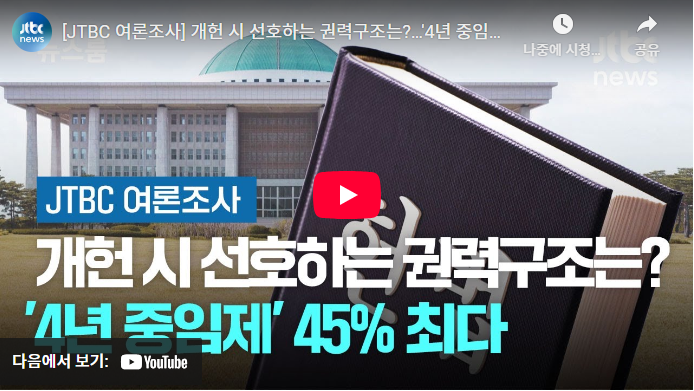 4년 중임제에 대한 여론조사 결과와 구체적 내용은 아래 영상을 통해 확인할 수 있습니다.